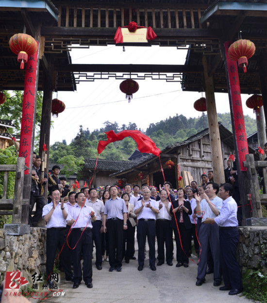 国家民委副主任罗黎明、省民宗委主任徐克勤、靖州县委书记钦代寿揭牌龙本亮 摄影