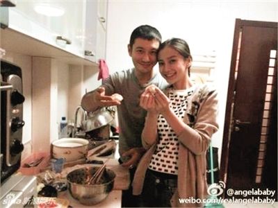 除夕夜,Angelababy在微博晒出与黄晓明一起包饺子的照片,此后,baby又随黄晓明回青岛见亲友。