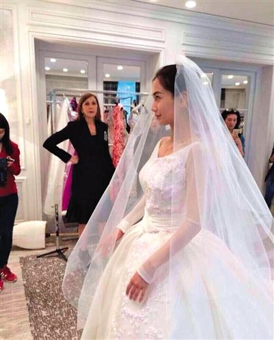 5月21日,有网友爆料黄晓明与baby在巴黎一同挑家具,并试了多款婚纱。