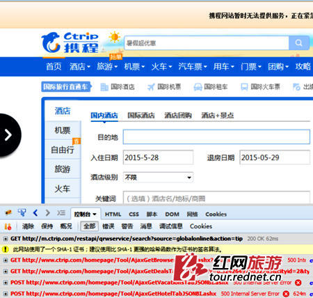 红网长沙5月28日讯(时刻新闻记者 姚冶)继支付宝被“光纤君”挖断网之后,携程网也“挂了”。今天上午11时许,携程旅行网官网及官方APP均出现无法使用情况,引起用户一片哗然。