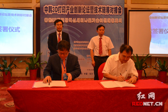 湖南3D数字化制造产业技术创新战略联盟与韩国3D打印研究协会签署合作备忘录。