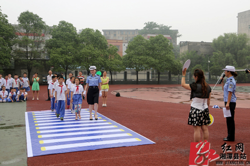 湘潭县交警携手百花小学开展“六一”交通安全演练活动