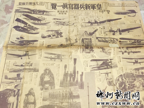 欧阳仁凯说,这张地图反映的是日军侵华时的野心及军事实力,而另一张他收藏的报纸《每日新闻》反映的是日军利用它们发动侵华战争的结果。欧阳仁凯拿出他收藏的一张大阪《每日新闻》报纸,该报纸报道了当年日军使用最新武器的情况,及国民党中央政权转移至重庆,同时,还报道了《皇军新兵器写真一览》图中出现的新型轰炸机在高空2000米投弹的基本情况。