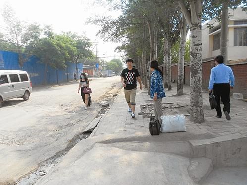 26日上午8时30分许,记者来到霍女士所说的省旅游学院站,开始步行体验这最后一公里。马路确实如她所说,双向两车道,各种车辆混行在一起。这时,路面平整,两边的马路牙子很宽,不过,一两家早起的摊贩已经拉来家具往开支摊了。