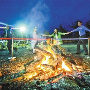龙湾国际露营公园里的篝火晚会。