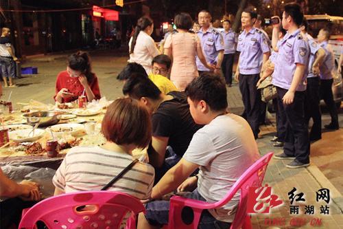 “这些夜宵摊点在规范管理后,基本做到了'门前三包',店面亮堂,地面干净,卫生状况也比较好。”雨湖区城管局的夜市渣土队负责人郑志坚介绍说。靠近大埠桥的一家夜宵店主也告诉我们,以前,他对城管队员的劝导、发整改通知单,很恼火也很反感。但是,经过一段时间的磨合后,他们按城管的要求去做,经营夜宵做到了不扰民、地面干净、摆放有序,生意反而越来越好了。“现在,老百姓不仅'吃口味',更是'吃环境',好口味加上好环境,生意越来越好了,说到底,还要感谢城管执法队员持之以恒的严格管理和反反复复的宣传劝导。”曦哥龙虾店的老板笑着说。