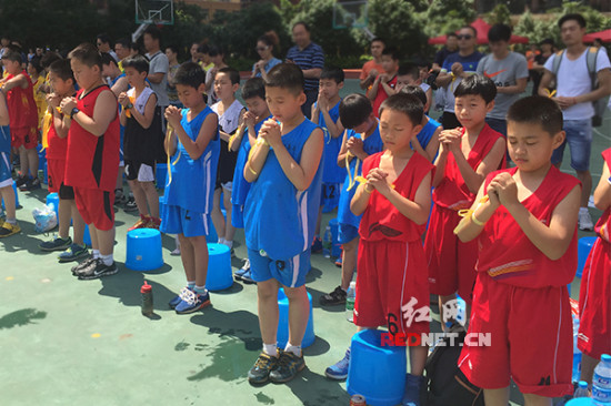 红网长沙6月5日讯(时刻新闻记者 周丹)一声声呐喊的“加油”,一根根飘扬的黄丝带,今天下午,长沙芙蓉区小学篮球决赛暨“东方之星”沉船事件祈福活动在育英二小的校园内举行。该活动以“关注健康,珍爱生命,祈福平安”为主题。