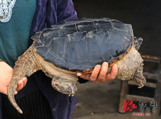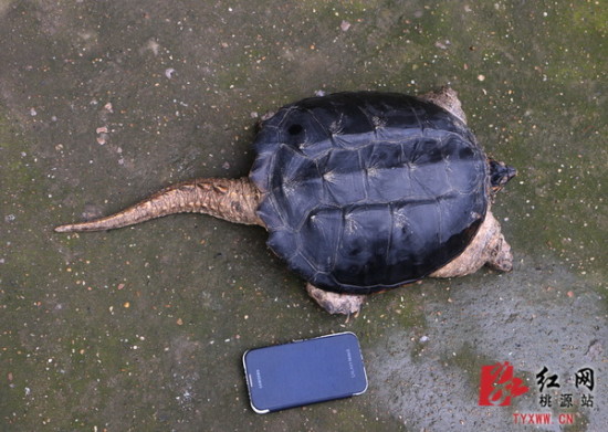桃源捕获15斤重蛇鳄龟 龟背13个突起尾巴似钢鞭