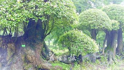 (移栽巨蔸长11米,上生粗大樟树数株。)