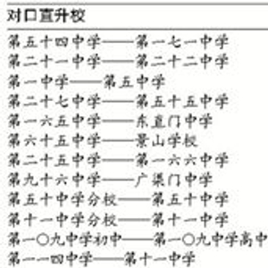 今年4月,海淀区教委曾宣布,计划建设5对九年一贯对口招生校,分别为民族小学对口直升交大附中,双榆树一小对口直升中关村中学,培英小学对口直升育英中学,八里庄小学对口直升首师大附中,和平小学(温泉中心小学)对口直升101中学温泉校区。