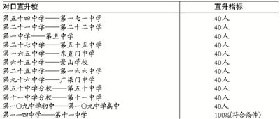 2015年,东城11个试点校新入学的初一年级学生,在毕业时,将依据中考成绩安排40个指标直升对口优质高中。此外,第一一四中学符合条件的学生100%直升第十一中学。