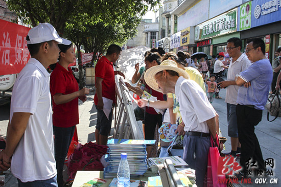 炎陵县安监局、环保局、住建局、公安局、人社局、林业局、农业局、国土资源局、总工会、团县委等27家单位参加了宣传活动。