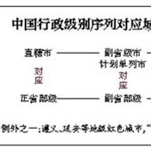 在中国的行政级别序列中,城市同样有级别:分为直辖市、副省级市、计划单列市、地级市、县级市等;一般分别对应正省部级、副省部级、厅局级、县处级等。不过也有例外,遵义、延安等地级红色城市,“一把手”通常高半格,由省委常委兼任。