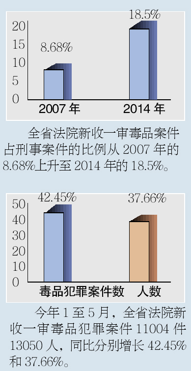广东高院通报,毒品案件占刑事案件的比例从2007年的8.68%上升至2014年的18.5%