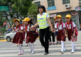 (老师和孩子们收到伊利方舟定制的交通安全物资)