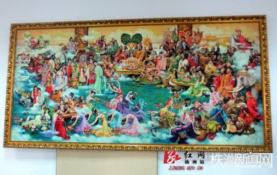 刘宇一先生作品《瑶池会仙图》,以王母娘娘开“蟠桃宴”为主题,描绘了中华民族上下五千年文明史的108位人物红网株洲站6月25日讯(分站记者 若叶 通讯员 孙晓静)24日上午,“华彩丹青咏乾坤---宇一艺术进校园”油画巡展在北师大株洲附校开幕。著名油画家刘宇一的作品首次来到株洲,这也是该巡展在全国中小学的第三站。