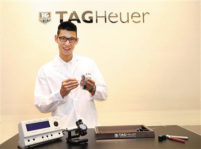 6月22日,TAG Heuer(泰格豪雅)全球品牌大使林书豪亲临北京王府井东方新天地,接受TAG Heuer(泰格豪雅)北京大挑战,向粉丝示范#无惧挑战,成就自我#的先锋精神。林书豪当天佩戴饰有黄色条纹的Aquaracer竞潜系列特别款腕表,这款腕表铭刻了他的个人标志。