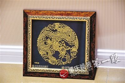 重庆晚报讯 金箔剪纸你听说过没有?大渡口堰兴剪纸产业园区用小小剪刀又玩出了新工艺——用24K纯金金箔剪出团龙、十二生肖等吉祥图案。据介绍,堰兴剪纸推出的金箔剪纸工艺是目前重庆市唯一一家。