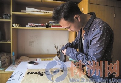 湖工大“无指男孩”练得一手好字画 渴望成为教书画老师