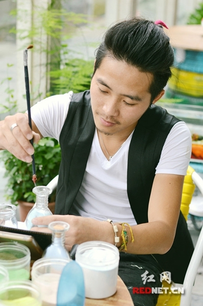创意商品不仅仅是新意的集合,也是一种人生态度的展示,不少创作者会将环保理念结合,变废物为神奇,比如废旧的铁丝、罐子,甚至是不起眼的沙石。集市现场,摊主王立杰就会带来纯手工制作的约旦立体沙画、沙瓶画。