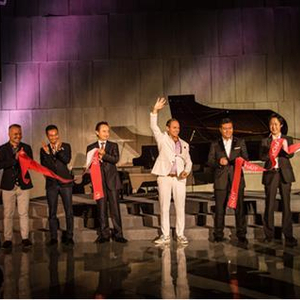 图注:夏泰工作室盛大开幕剪彩仪式 (剪彩嘉宾从左到右依次为:制作人潘静之、PRG总经理Dereck Au、上海浦东文华东方酒店经理Pierre Barthes、夏泰大师、德稻集团总裁助理文亦飞、雅马哈乐器音响(中国)投资公司贝森朵夫推进室副室长山下英树、导演Julliet Pan)
