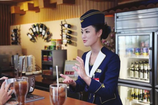 最吸引记者的,莫过于甜品店。虽然面积不大,只有吧台大小,但经营品种丰富,从各类你想到或想不到的西式糕点到咖啡、茶、鸡尾酒等应有尽有。服务员金明元告诉记者,他曾专门到德国接受2个月的培训。从他举手投足中,记者能感受到他服务的专业化和在新航站楼工作的满足感。