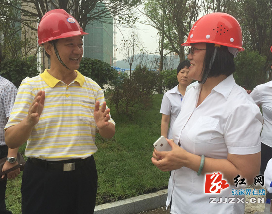 在酒店施工现场,朱国军一行详细了解了酒店项目目前建设进度、今后经营规模、接待能力等情况。张家界蓝湾博格国际酒店总建筑面积7.2万平方米,主体楼共3栋,每栋楼高22层,其中地下1层,地上21层,总投资约2.64亿元。酒店拥有各类客房880余间,床位1500余个,目前酒店的主体工程已完工,现正进行装饰装修工程的施工,将于近期试营业。但目前酒店存在拆迁、用地、基础设施配套不完善等问题。