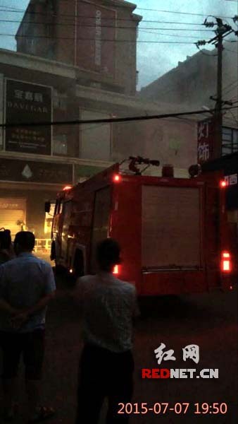 (7日晚7时50分,火灾现场仍可见浓烟滚滚。附近居民拍摄)红网长沙7月7日讯(时刻新闻见习记者 沈梦艳)今日晚6时30分许,长沙市雨花区喜来灯灯饰城3区一灯饰店发生火灾,火灾疑是电路故障所致。