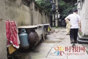 7月5日,重庆时报记者来到该小区,小区共有5栋楼,液化气罐就放在小区围墙附近,这里是居民进出的主要通道,放上气罐,通道只剩大约2米宽。