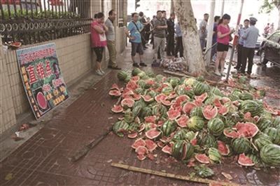 砸瓜余波:摊贩拒不接受处罚等西瓜腐烂