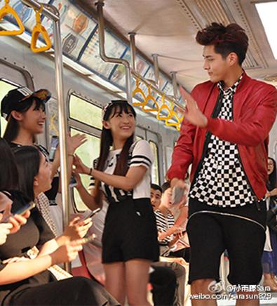 注:陈伟霆(右)与西南交大校花张溪在广告片中对手戏