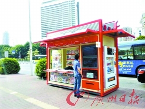 市民在广州报刊亭公司推出的广州智能报刊亭前浏览信息。