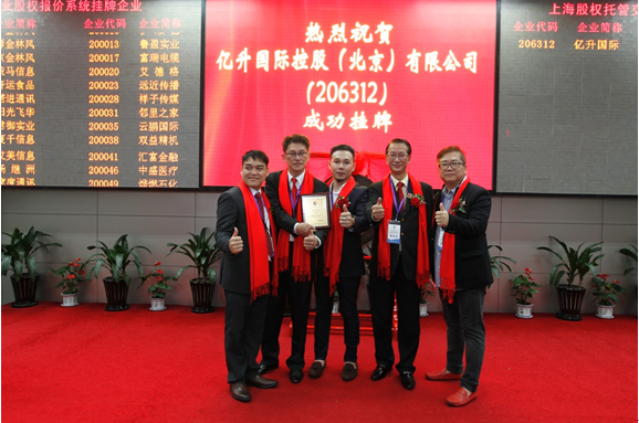 2015年7月9号下午2点,亿升国际控股(北京)有限公司假上海股权托管交易中心举行挂牌上市仪式。也在当天1点,特别隆重安排策略合作伙伴签约仪式.