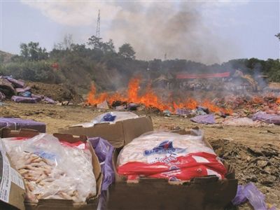 南宁海关工作人员介绍,“走私冻品进来,本来就没有合格证,也没有检验检疫证明,我们没有必要去核实(时间)这个问题,直接拿去无害化处理了”。