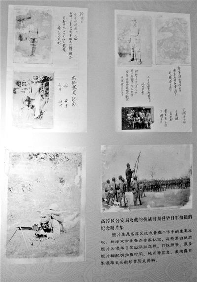 本次文物普查中,从非文物单位的国有单位中也发现了不少珍贵文物,刘媛之就重点讲到了高淳公安局所藏的一套侵华日军自己拍摄的纪念照片集,“这套照片当时是在高淳民居墙洞里发现的。侵华日军出征时自己拍的照片,比如其中一张,旁边记着自己是京都什么人,跟母亲拍的,自己多少岁,母亲多少岁。这套影集应该是侵华日军自己放在墙洞里,后来没有带走,或者战死了,也未可知。”