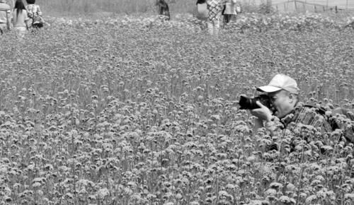 拍照时,谁的POSE摆得最好?是被拍的人吗?不一定,“照相师傅”的范儿也是千奇百怪。7月12日,太原市北固碾村的薰衣草开得正艳。游人如织中,这位拿相机的“游击战士”隐身花丛之中,捕捉自己的目标。