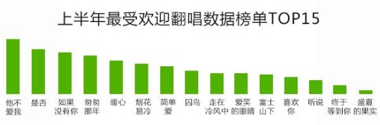 哪些歌最容易打动大众评审团呢?据悉,繁星网通过对酷狗音乐6亿多用户的长期大数据分析,通过数学模型计算向粉丝推送平台艺人和翻唱歌曲。业内人士表示,该大数据模式可以帮助整个产业进行资源合理分配,无疑开创了音乐生产管理的先河。最近,繁星网公布了最新一期华语音乐大数据,其中,2015年上半年乐迷点唱最热曲目包括:《他不爱我》、《是否》、《如果没有你》、《匆匆那年》、《暖心》、《烟花易冷》、《简单爱》、《囚鸟》、《走在冷风中》、《爱笑的眼睛》、《富士山下》、《喜欢你》、《听说》、《终于等到你》、《盛夏的果实》。同时,繁星网后台显示,翻唱以上15首曲目的艺人在收益环比上也有较为明显的提升。