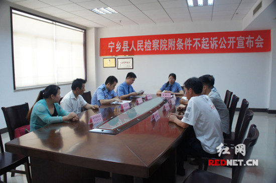 红网长沙7月16日讯(时刻新闻记者 郑涛 通讯员 赵婵娟)“现依法对未成年人小军(化名)作出适用附条件不起诉决定,考察期为六个月。”7月14日上午,宁乡县检察院检察员欧海霞、助理检察员周乾宇组织对小军涉嫌盗窃一案宣读了附条件不起诉决定书。听到这个决定后,异常紧张的小军轻轻地舒了一口气。