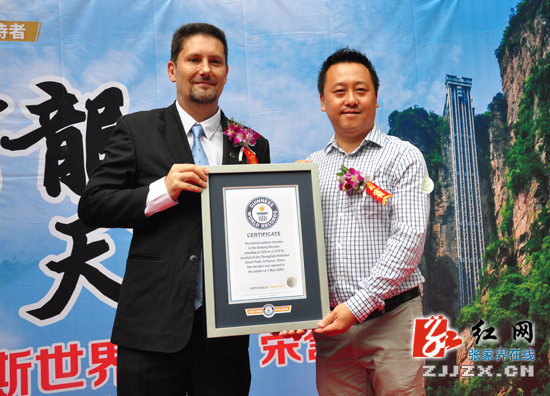(原标题:“最高户外电梯”张家界百龙天梯创造吉尼斯世界纪录(图))