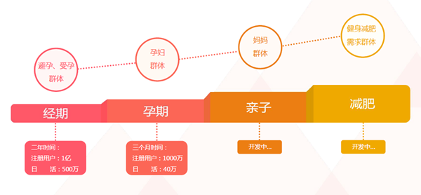从经期管理工具起步,美柚逐渐发展成了围绕女性方方面面而建立起的生活社区,客户类型涵盖女性洗护产品,美妆护肤,厨房用品,美食,亲子,影视等广泛行业,已和苏菲,苏泊尔,苏宁易购,《女神的新衣》,好奇宝贝等数百个品牌达成合作。在未来,美柚将加大对亲子以及减肥领域的关注,这两个时下的热门话题,通常会需要更多的经验讨论,将吸引到更多年轻女性群体的加入,并且她们的社交属性也更强。