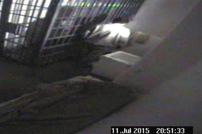 牢房内的摄像头拍摄到古斯曼走进淋浴区。
