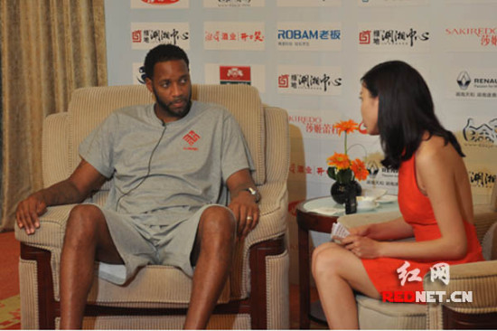 (麦迪在新闻发布会上接受媒体采访。)