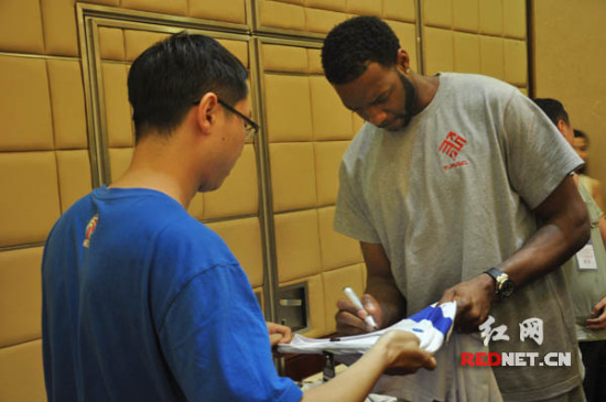 (麦迪给球迷签名。)