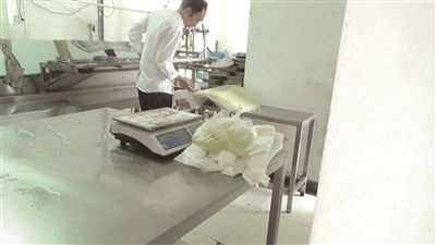 据南京一家正规生产凉粉皮的生产企业工作人员介绍,正常的凉粉皮生产过程先是把浆按比例调好,然后将浆倒入灌装机装好,放入蒸箱蒸熟以后再进行冷却,冷却后就可以整理装包了。该工作人员坦言,“非法生产凉粉皮的生产企业的流程和我们一样,但唯一的区别是非法生产商会在马铃薯粉内添加大量的明矾。”该工作人员表示,如果不加明矾,一斤粉只能出5斤凉皮,如果加入明矾就会生产出8—9斤凉皮。