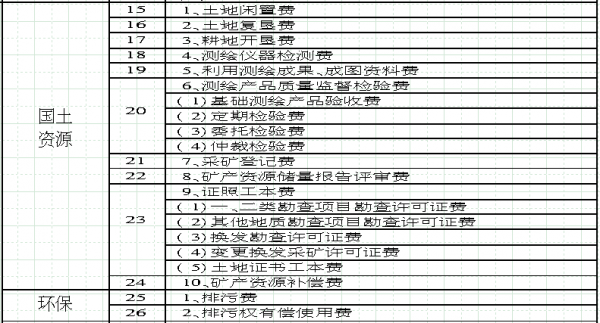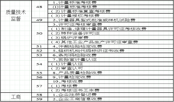 这次公布的收费项目涉及20个部门,共有59个收费大项,其中包括4个暂停收费的项目以及少数对小微企业、非营利性养老及医疗机构建设实行免征的项目。其中质量技术监督部门和国土部门项目最多,各有10项。