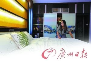 张太太发现,很多房子都比自己家漂亮多了。有房东打出“温馨牌”,客厅水果盆永远琳琅满目;有的房屋屋主承诺,每个客人都会有专一密码指纹开门,退房后指纹就失效;位于汉溪长隆的一家公寓布置为动物园主题房,客厅铺着草皮,上面趴着长颈鹿、斑马、老虎等各种逼真玩偶……