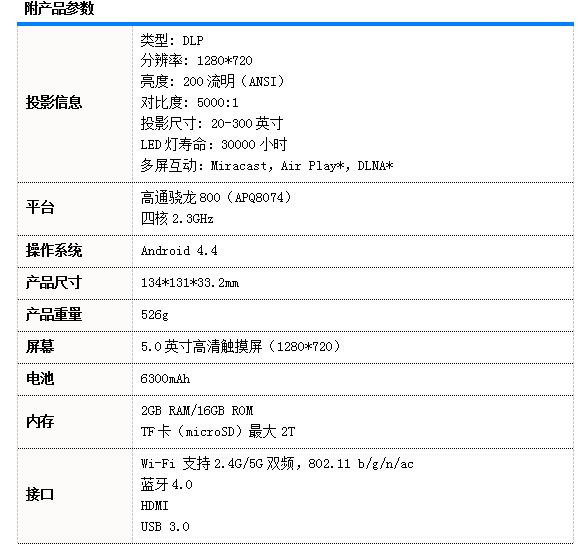 Spro2投影画面最大尺寸可达到300英寸,加上200流明的亮度,Spro2分辨率达到1280×720高清水准,同时还支持4K超清画质播放。