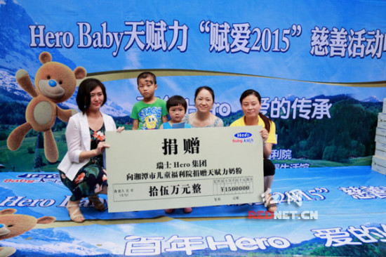 (Hero集团为湘潭市儿童福利院捐赠价值15万元的奶粉。)