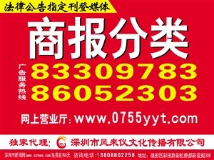 27201经股东决定终止营业并注销,现成立清算组进行清算,清算组由方玉芬,龙艳、郑海伟组成,方玉芬为清算组负责人,请相关债权人于见报之日起45天内到我司清算组申报债权及办理债权登记手续。联系人:郑海伟,电话:82669905,地址:深圳市福田区红岭南路红岭大厦5栋地下。