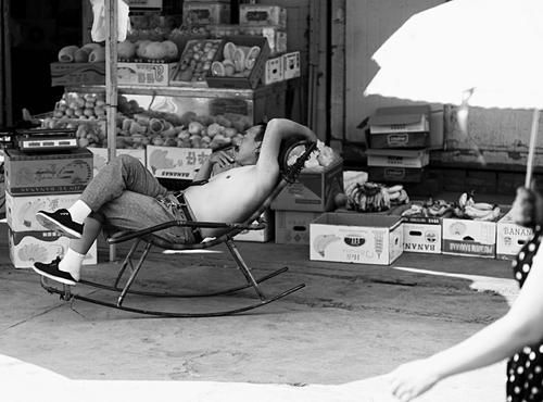在太原,商贩赤膊等待顾客 本报记者李春泽摄